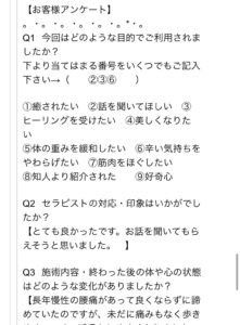 ①癒されたい ②話を聞いてほしい ③ヒーリングを受けたい ④美しくなりたい