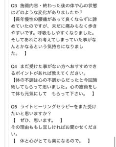 Q3 施術内容・終わった後の体や心の状態はどのような変化がありましたか?