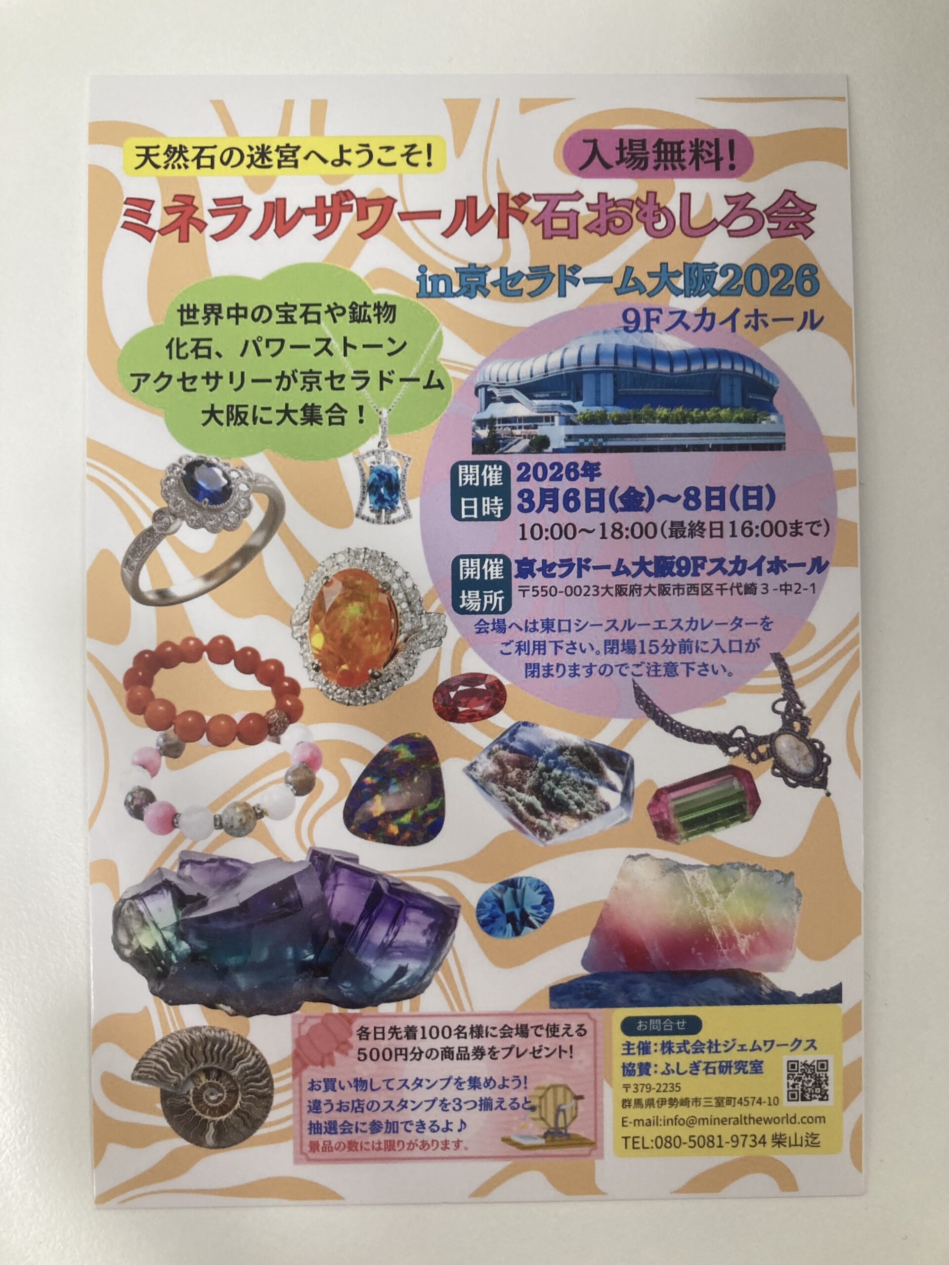 「ミネラルザワールド石おもしろ会in京セラドーム大阪2026」に出展にご興味がある方は、宜しければお越し下さいませ。