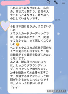 今回ご紹介するお客さまは、大阪サロンにて1stステージから順に講座を受けられ、1stステージではペンジュラムとオラクルカードをマスターして頂きました。